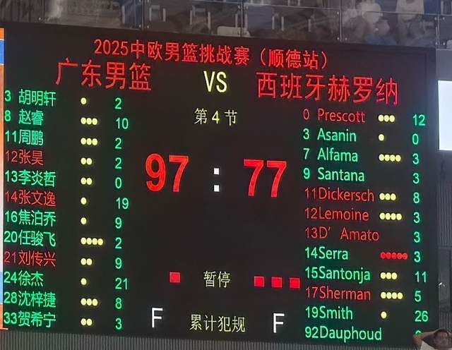 10月19日晚上,廣東全運(yùn)男籃來到佛山,與來訪的西班牙赫羅納男籃打了一場熱身賽。經(jīng)過4節(jié)較量,廣東隊(duì)以97-77大勝對(duì)手,拿到了熱身賽的6連勝,真是太猛了!不得不說,杜鋒組建的豪華陣容,屬實(shí)厲害,管你美國球隊(duì),還是歐洲球隊(duì),都照贏不誤。徐杰獨(dú)砍21分,趙睿10分,張文逸19分。