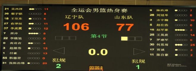 四節(jié)戰(zhàn)罷,總比分106-77,遼籃大勝山東男籃29分,熱身賽3連勝圓滿收官,恭喜!