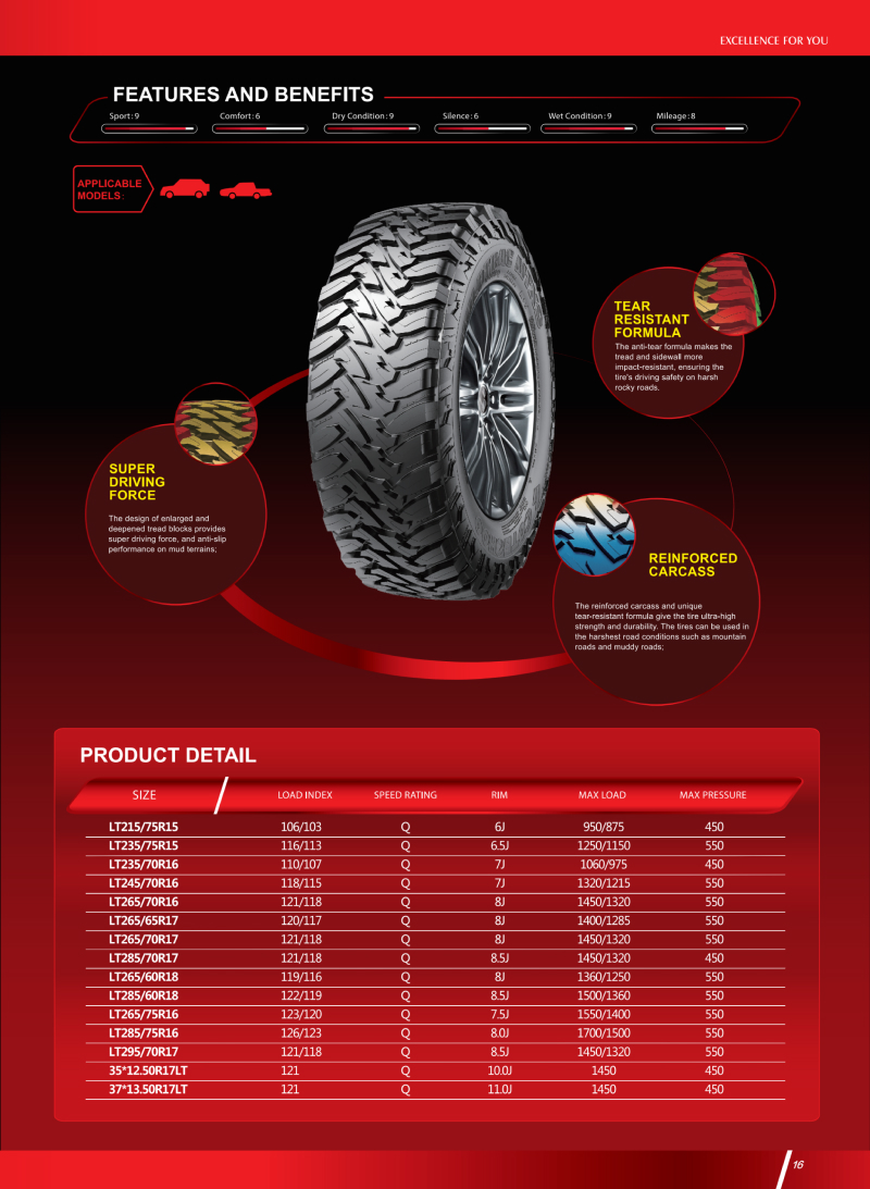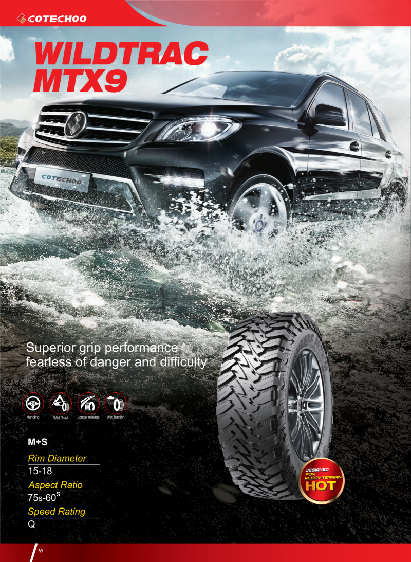 火焰型大塊花紋,是一款用于極限越野的輪胎,惡劣路況下提供超強(qiáng)的驅(qū)動(dòng)力、泥地防滑性能。