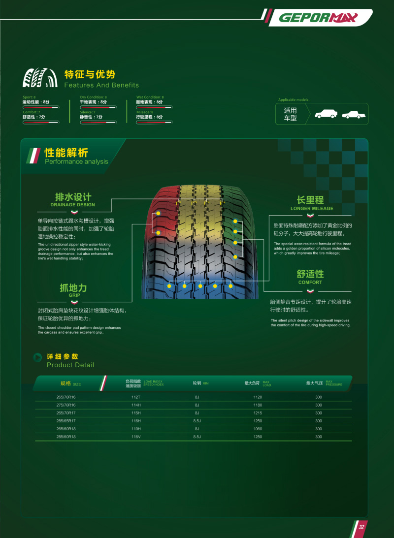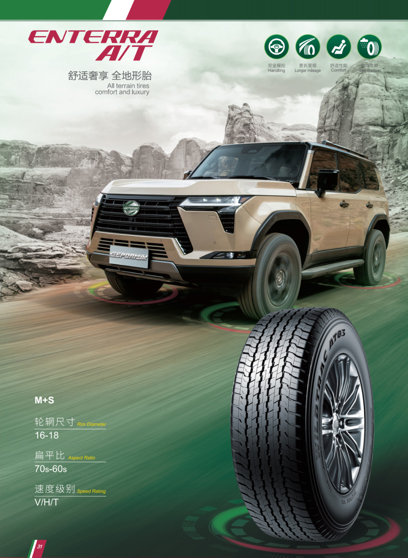 一款優(yōu)秀的全地形輪胎,突破性技術(shù)塑造胎面結(jié)構(gòu),對(duì)各自路況具有良好的適應(yīng)能力。