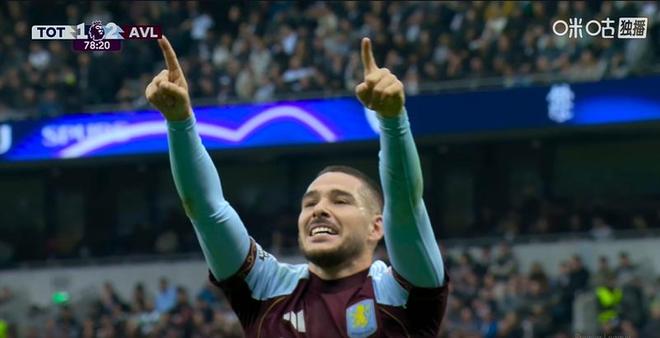 第36分鐘,摩根-羅杰斯前場右側(cè)禁區(qū)外突施冷箭,一腳精彩的落葉球,直接竄入熱刺球門遠(yuǎn)端上角入網(wǎng),維拉將比分扳平,場邊的埃梅里緊握雙拳,一吐心中郁悶!