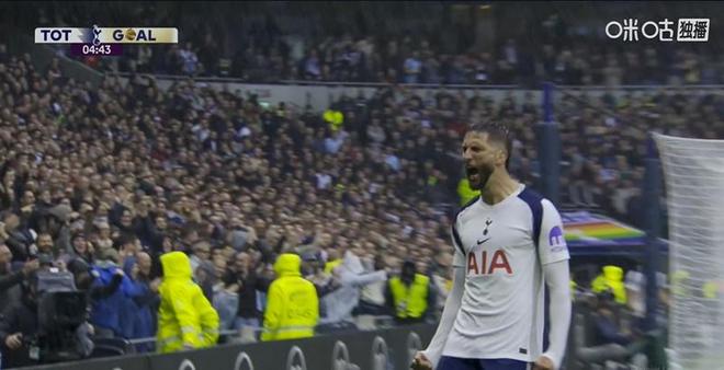 開場僅僅5分鐘,熱刺前場左側(cè)開出角球,二次進(jìn)攻機(jī)會(huì),帕利尼亞接到傳中頭球擺到中路,門前本坦庫爾凌空掃射破門,幫助熱刺取得領(lǐng)先。
