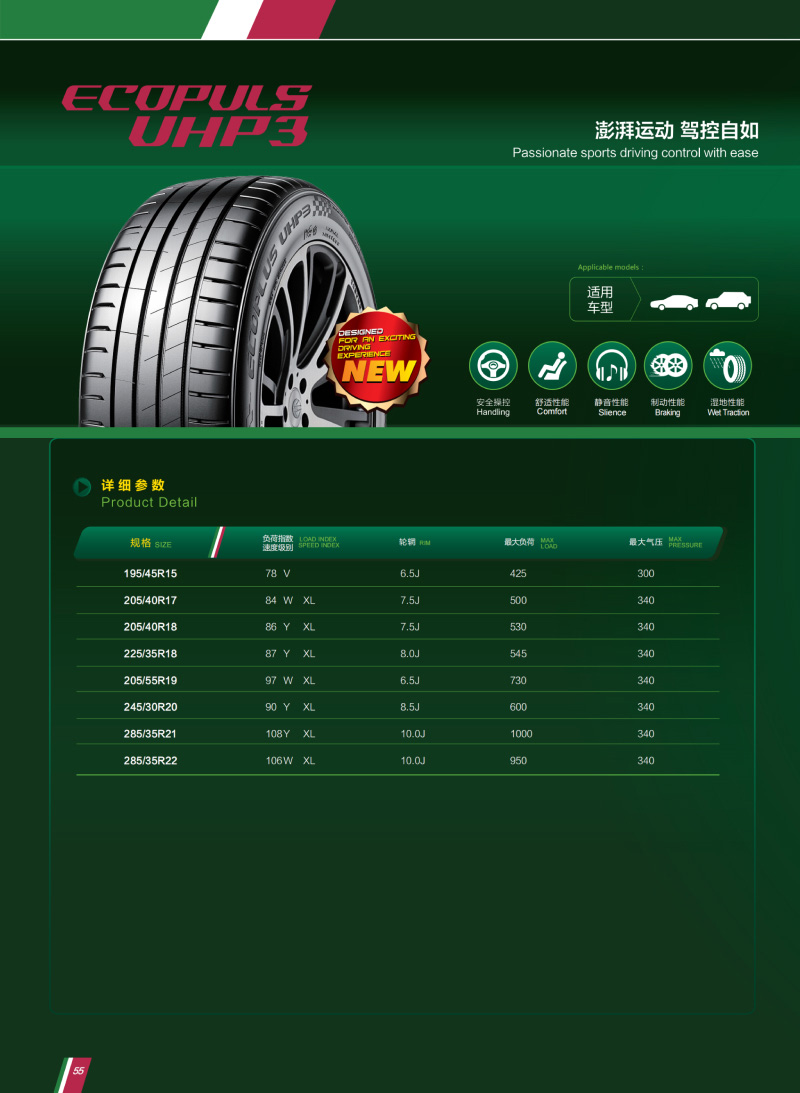 全新設(shè)計運(yùn)動型花紋,應(yīng)用高含量白炭黑配方,提供優(yōu)秀的抗?jié)窕阅?,澎湃運(yùn)動,駕控自如。